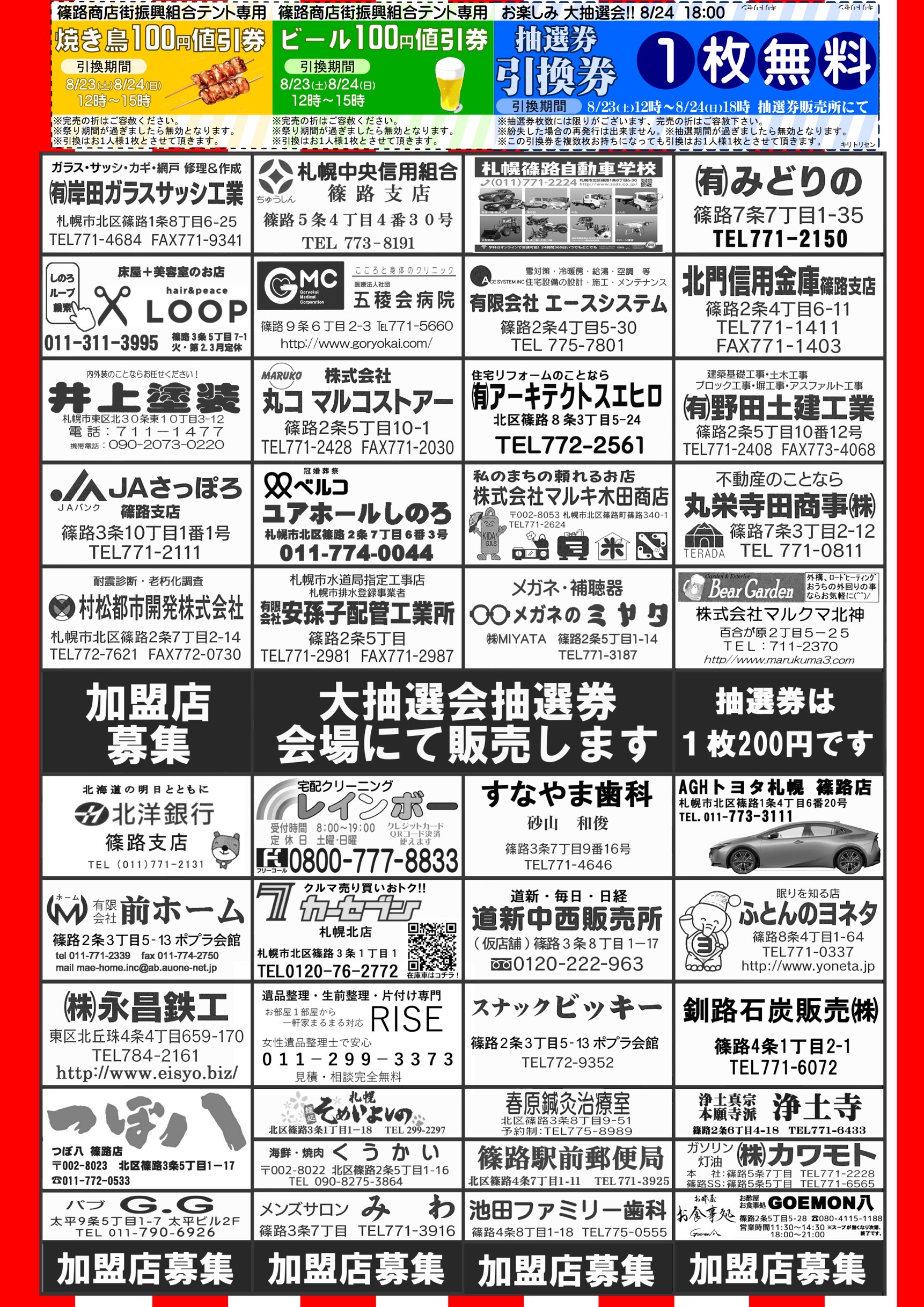 | 7月25日 | 二番街商店街オリジナルうちわの配布 | 二番街商店街 | ヴィアインプライム札幌大通<鈴蘭の湯>前 他二番街商店街步道 大通~南4条の西2丁目線 |