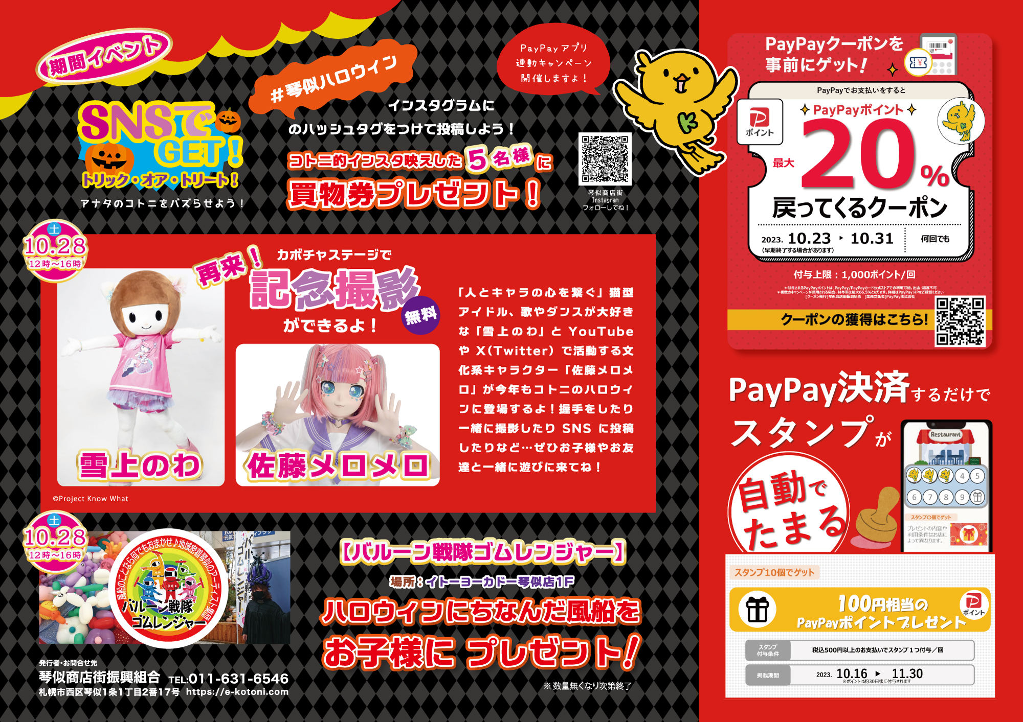 | 10月28日 | ハッピーハロウィンinハツキタ2023 | 発寒北商店街 | きんなん通り沿線 |