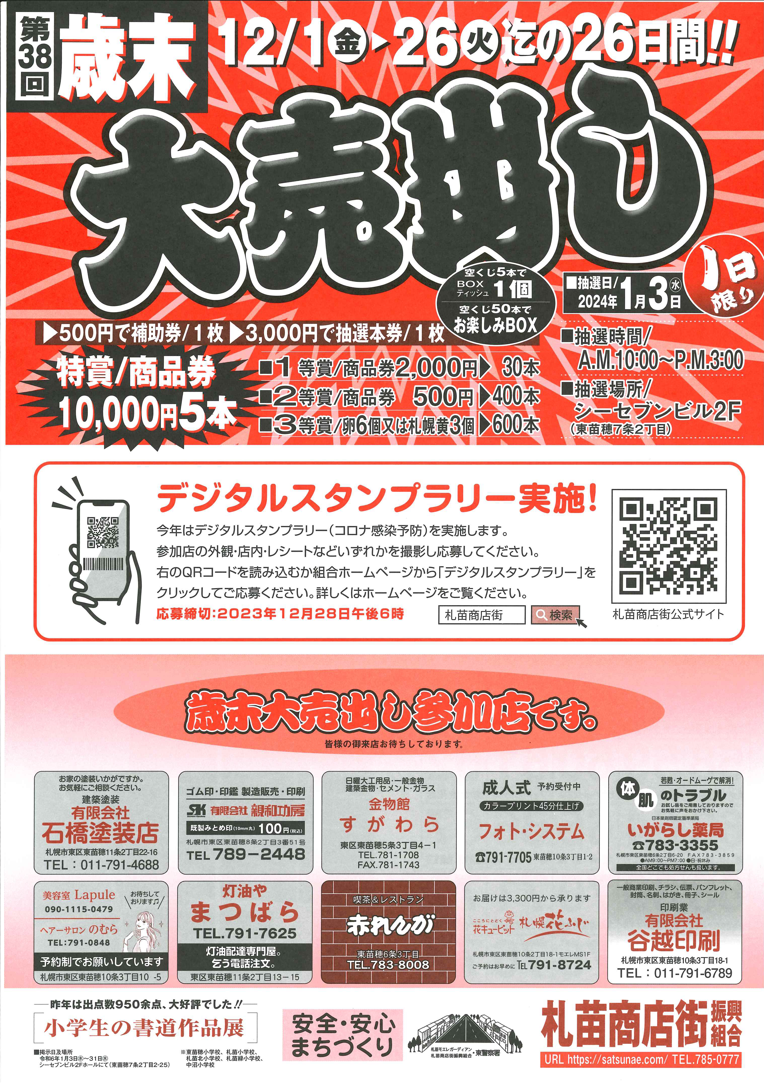 | 12月16日 | 狸小路150周年記念 ・冬のオープニング式典 ・150万円現金つかみどり |