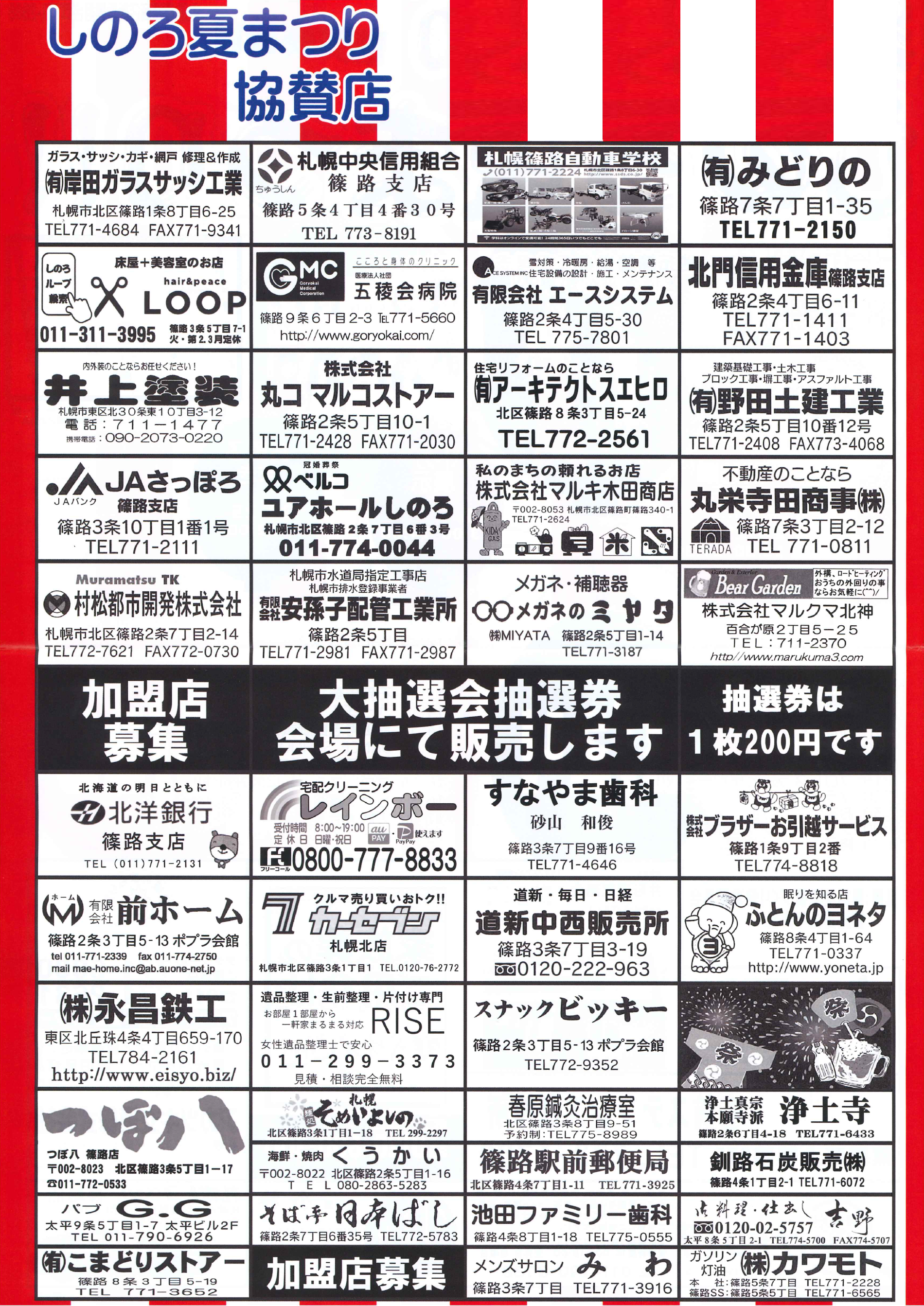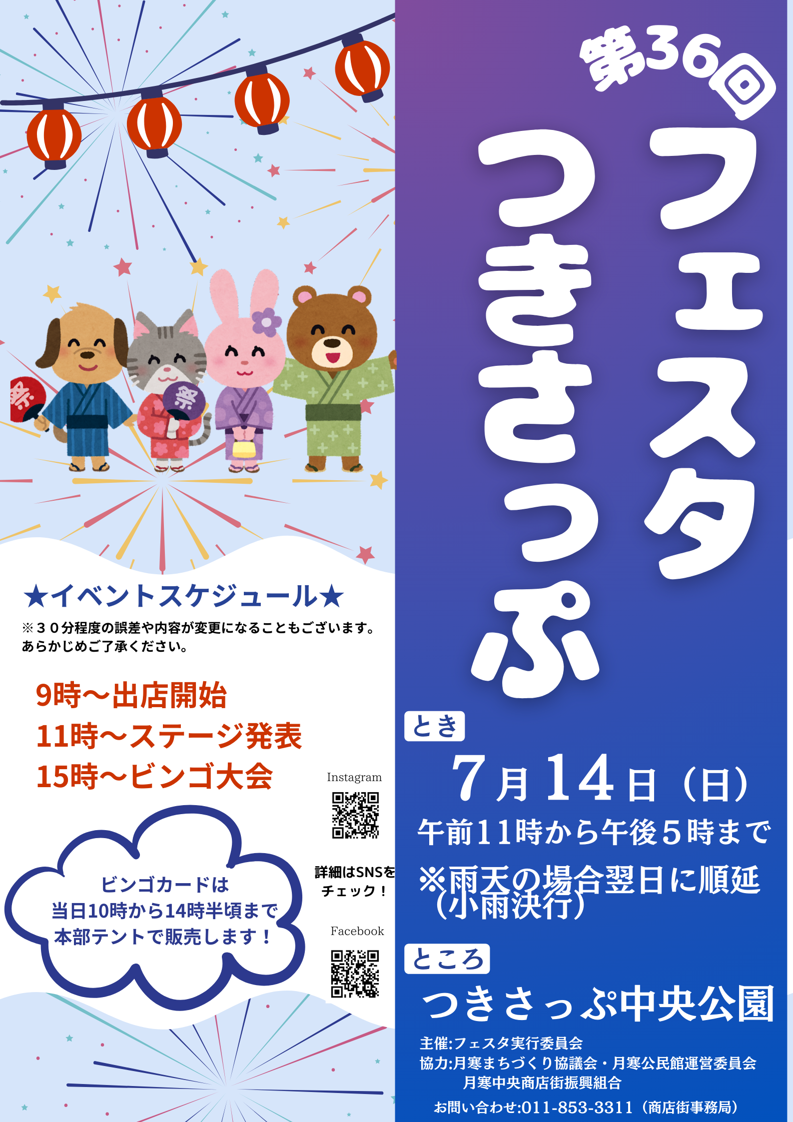 | 7月14日 | 第36回フェスタつきさっぷ | 月寒中央商店街 | つきさっぷ中央公園 |