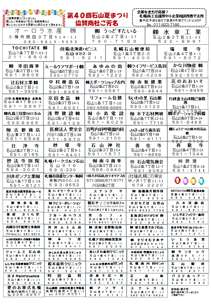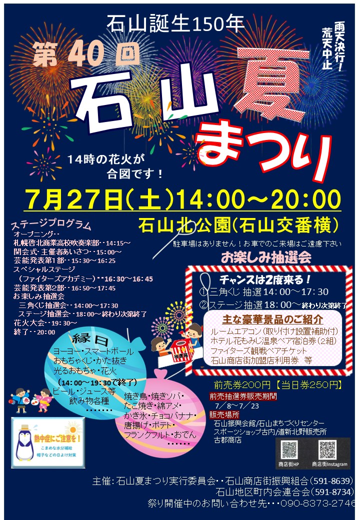 | 7月27日 | 第40回 石山夏まつり | 石山商店街 | 石山北公園 南区石山1条3丁目6 |
