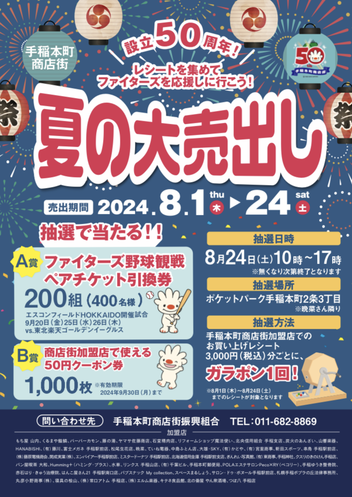 夏の大売出し | 手稲本町商店街 | ポケットパーク 手稲区手稲本町2条3丁目(晩菜さん隣り) |